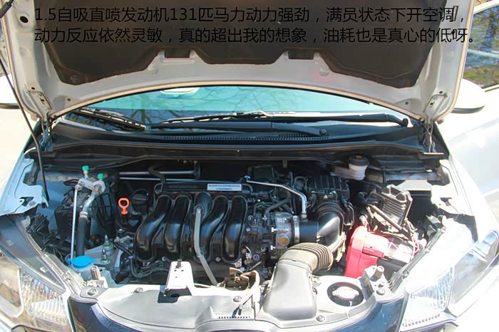 动力方面1.5自吸直喷发动机131匹马力,推动小身材的飞度绰绰有余,满载4的人开空调动力反应依然灵敏。匹配CVT无极变速箱平顺性非常好,而且有着非常不错的油耗(实测5.8个油),当然这跟开车方式及路况有很大关系,女人开车比较温柔,家住郊区基本不怎么堵车。即使激烈驾驶油耗也在6个左右,真心省油啊。