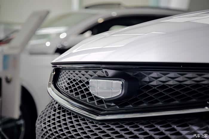 这是一款顶配车型,前摄像头被巧妙地隐藏在车标上方,用来采集前方信息,该车配备的360度全景影像及透明底盘都离不开它。