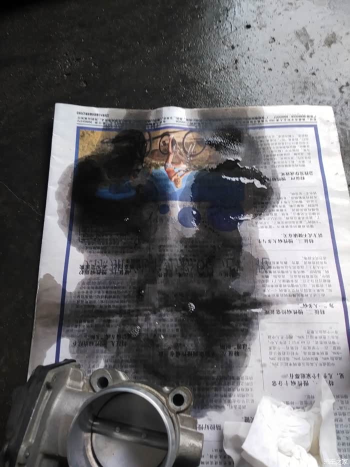 清洗中,大家看,脏吧,节气门脏容易引起发动机抖动。。