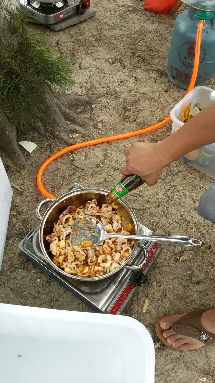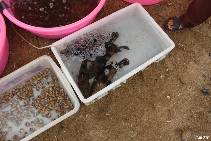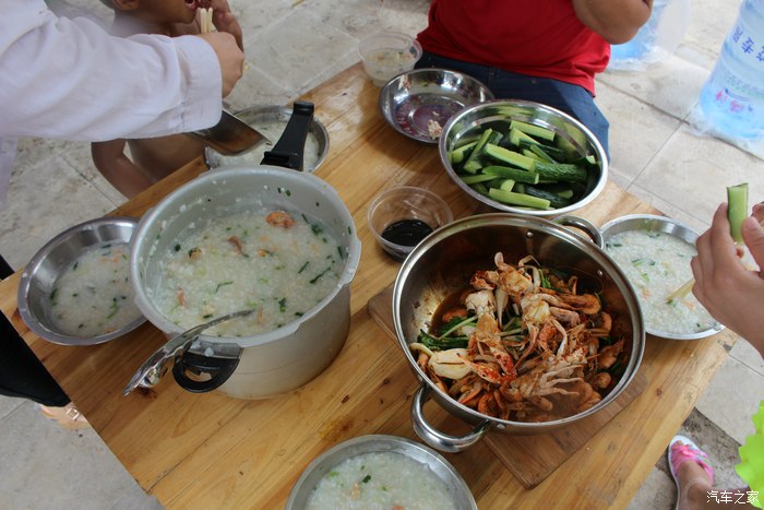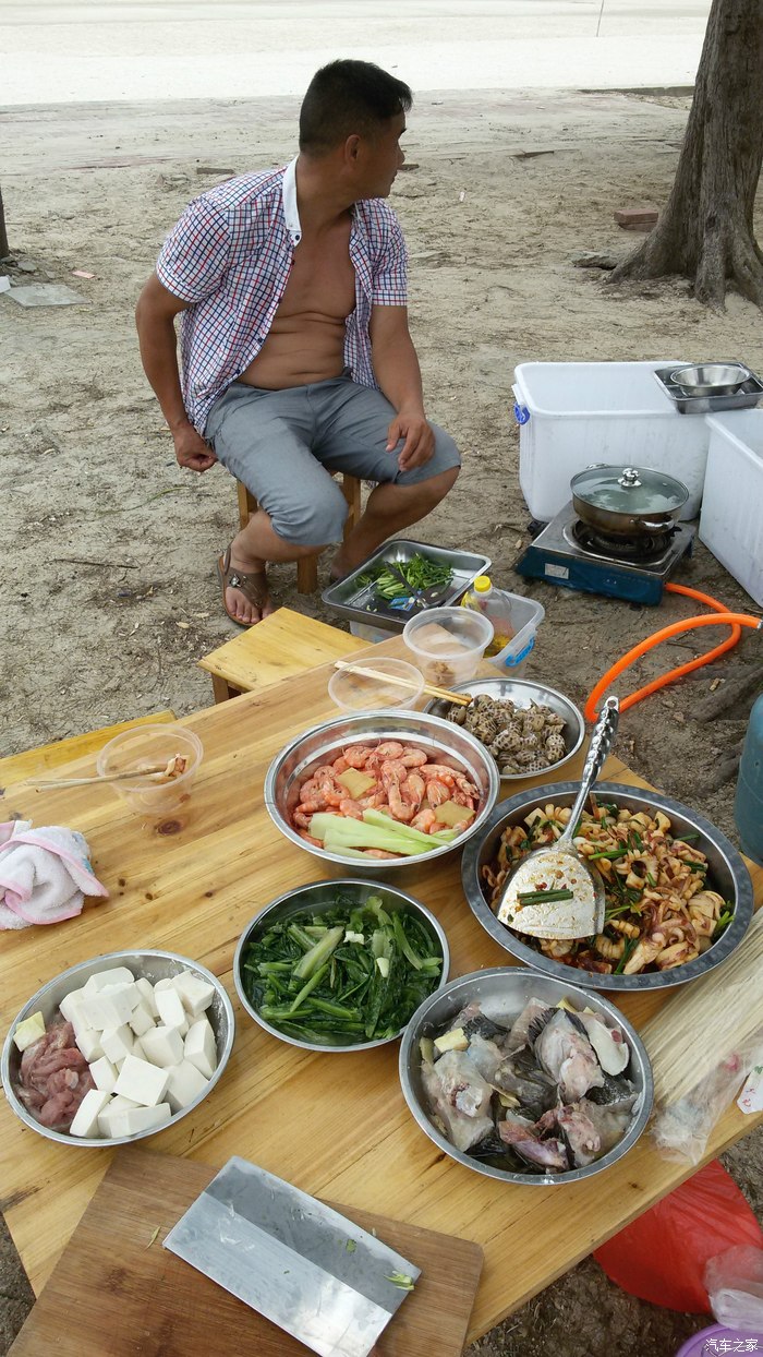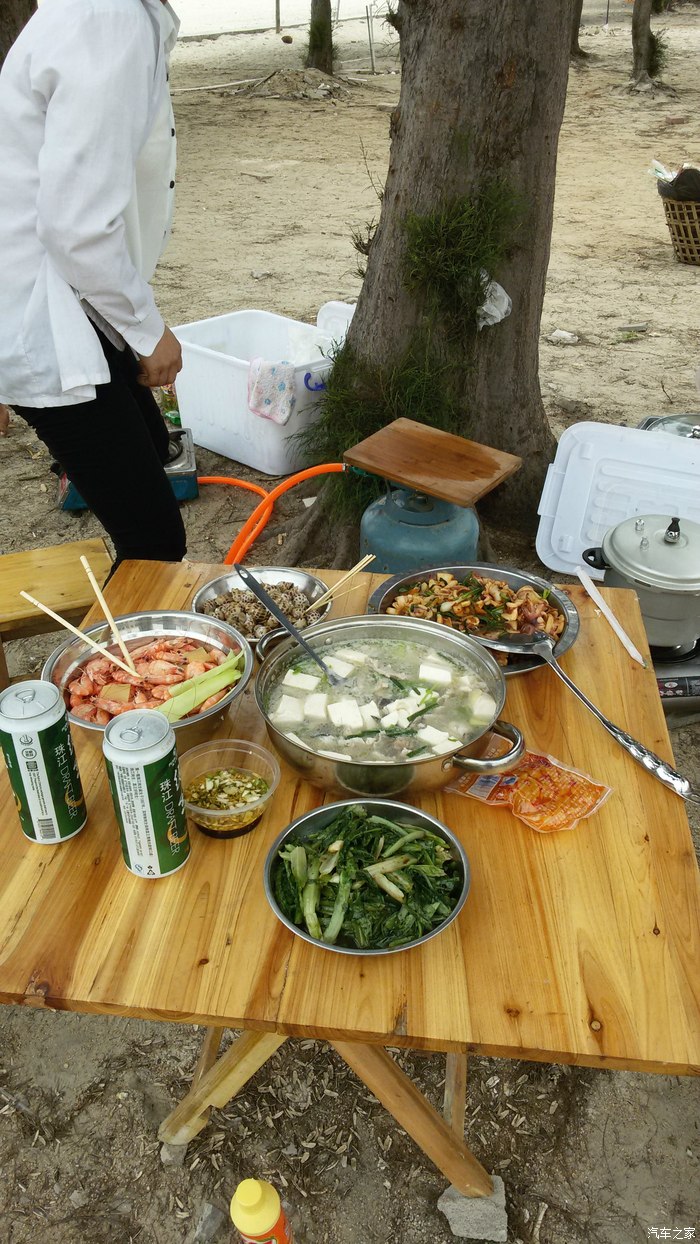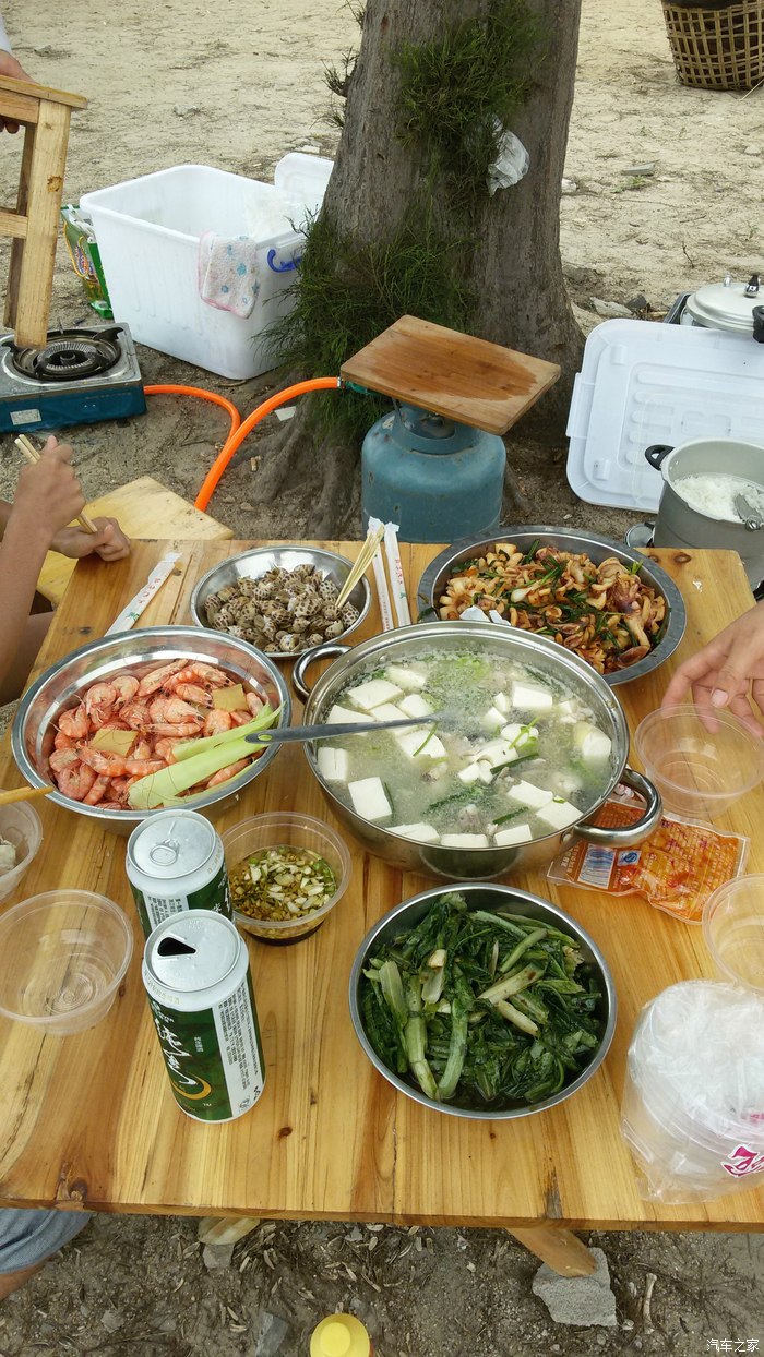 石斑鱼煮汤,明虾,鱿鱼,香螺,生菜,啤酒,开台。吃完收工回家。这次不算加油路费4个大人4个小屁孩三天共花了1600元。超级省钱。发完贴收工睡觉。