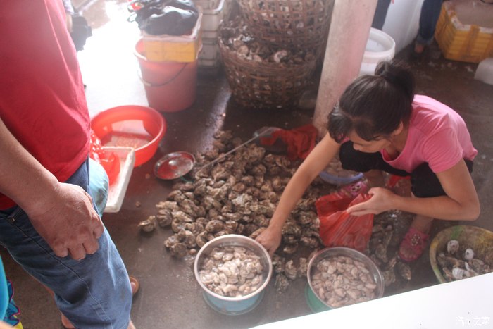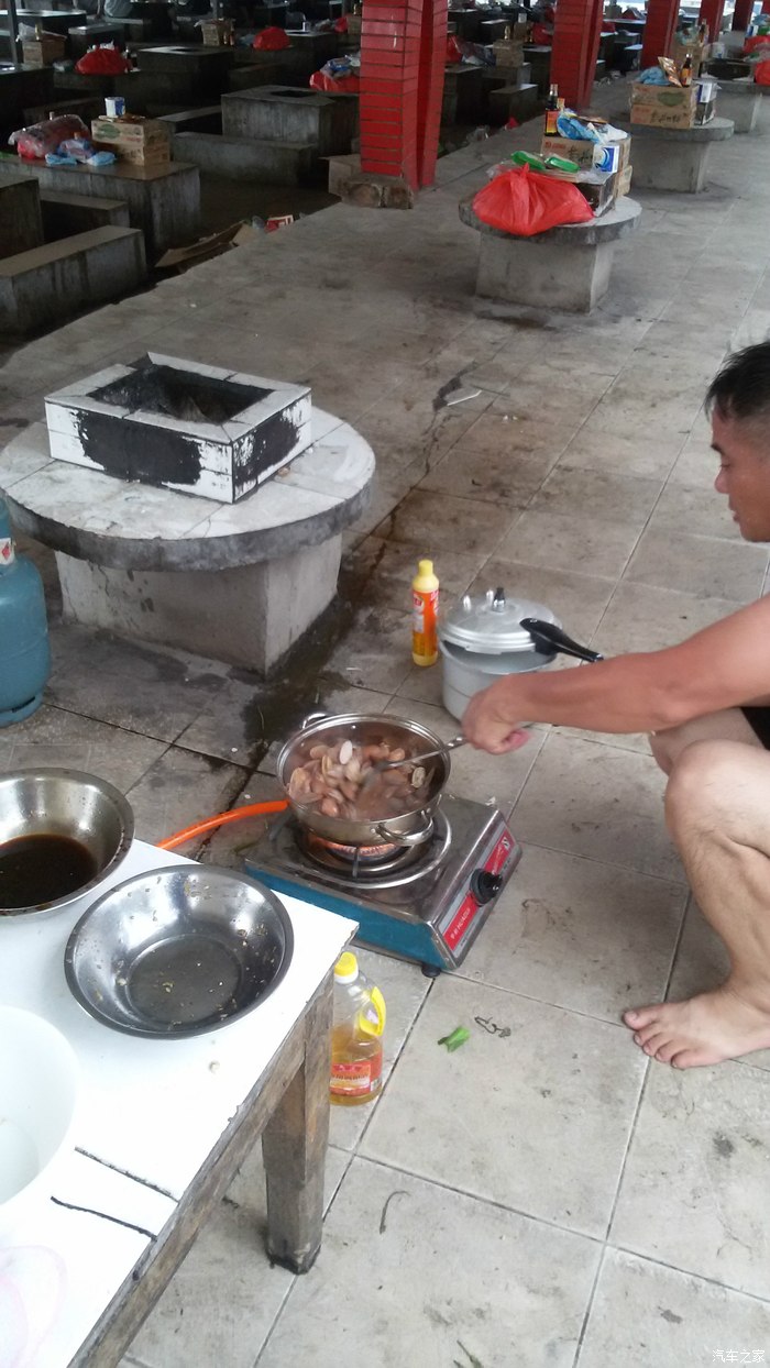早上大家吃了点***豆浆,直接到侨港,这里有烧烤摊,50元一个摊位,包水、木炭。我们不用木炭少10块。开始搬东西下来,先煮海鲜粥。