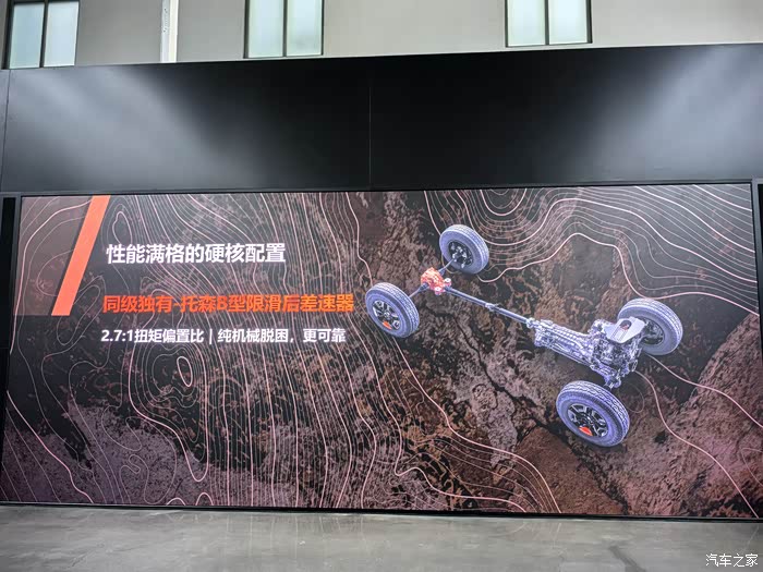 更值得称道的是其越野配置:223mm离地间隙、23°接近角与24°离去角的通过性组合,搭配全地形REVO3轮胎、全钢底盘装甲与托森B型后差速器,纯机械结构实现毫秒级自动锁止,无论是沙地、泥路还是崎岖山路,都能凭借智能四驱系统与六种地形模式从容应对,真正做到全域无界。