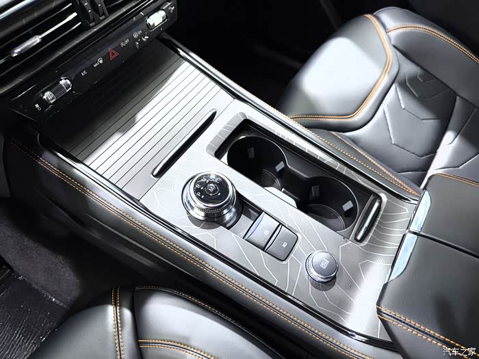 外观设计上,昆仑穿越版将硬派美学诠释得淋漓尽致。超5米的巨幅车身搭配硬朗平直的腰线,勾勒出"山系陆上游艇"的霸气姿态,山地进击式前格栅与熏黑大尺寸进气口形成强烈视觉冲击,犀利LED大灯点亮后更添威慑力。黑化处理的轮圈、侧裙与车顶,搭配醒目的橙色拖车钩,将越野属性直接拉满;C柱位置的昆仑山专属标识与细节处的等高线纹理,既彰显了专属身份,又暗藏源自万山之王的设计灵感,停驻时自带"请勿靠近"的强大气场。
