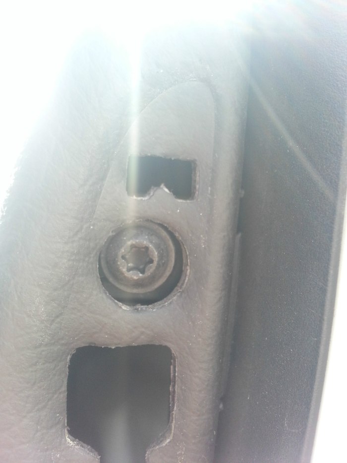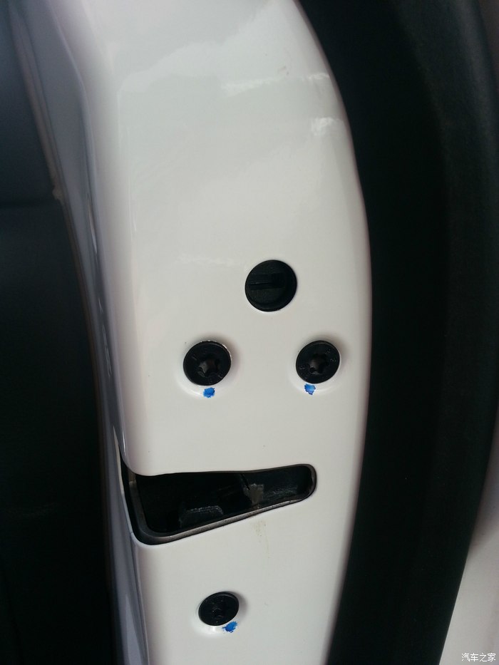 解决办法:撬开门板图片位置的黑色塑料盖,注意,要从盖子的上侧撬,因为盖子内部卡扣结构,从下面会把卡扣撬断(如下图)。里面是个梅花丝,有条件的用工具,没有的直接用一字改锥,但千万不能特别使劲,会把螺丝拧花。