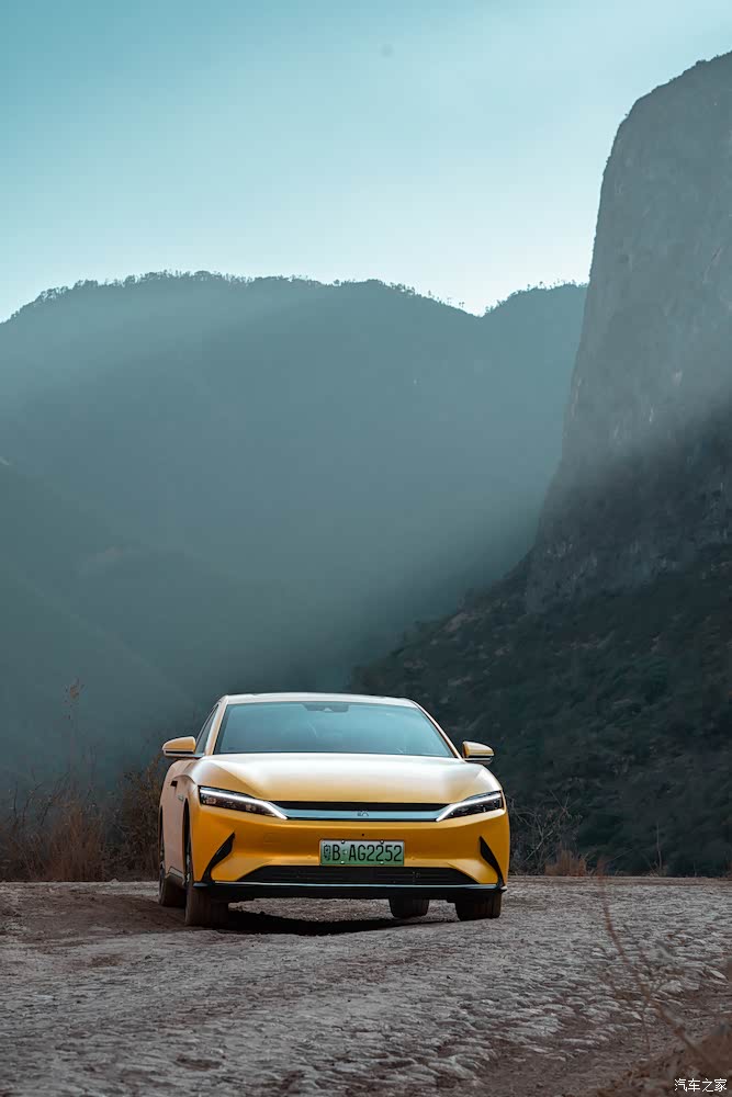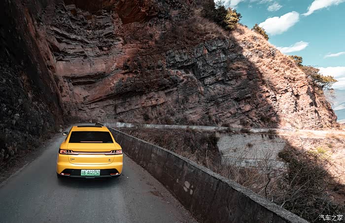 前往石头城的山路有一个好处,就是车不多,正好我们可以拍拍照片。黄灿灿的比亚迪汉EV在路上是一道靓丽的风景线。在路上行驶就听见了旁边的小朋友在喊:“看!跑车!”