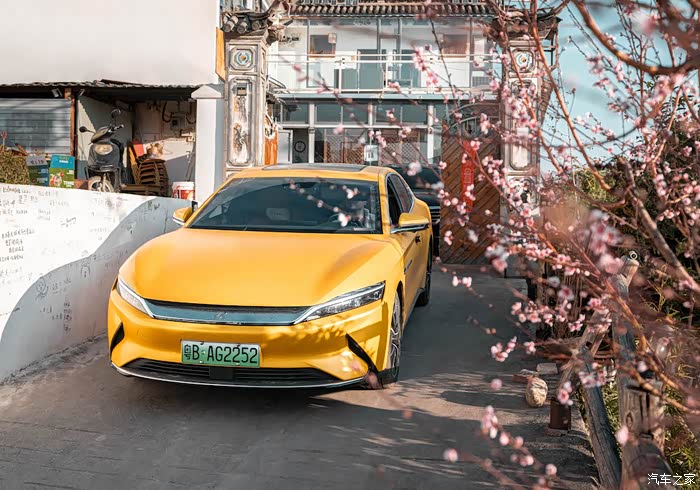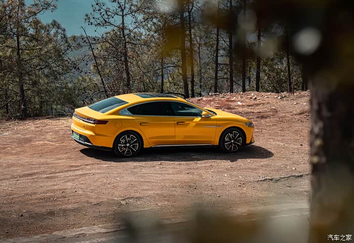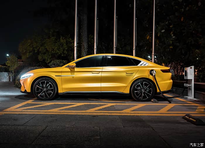 汉ev辅助驾驶功能相当强大,acc自动巡航,车道保持辅助,自动泊车都是日常生活比较常用的功能,黄色是自己贴的车衣吧,比较独特的颜色,3.9s可以零破百,这是无敌。