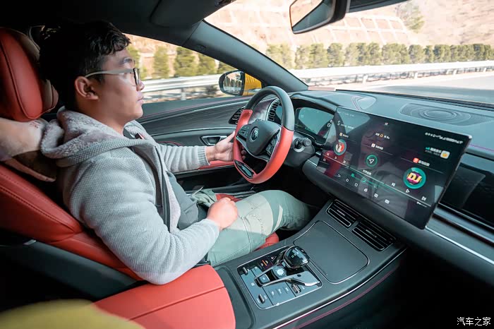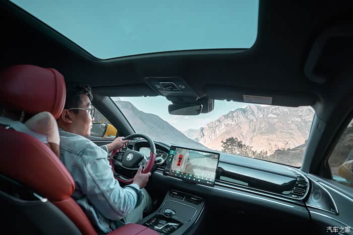 汉的密封性还是很不错的在尘土飞扬的路面上车内依旧是干净的。后排的摄影师说想来一张大全景,我把天窗的遮阳帘打开补个光。