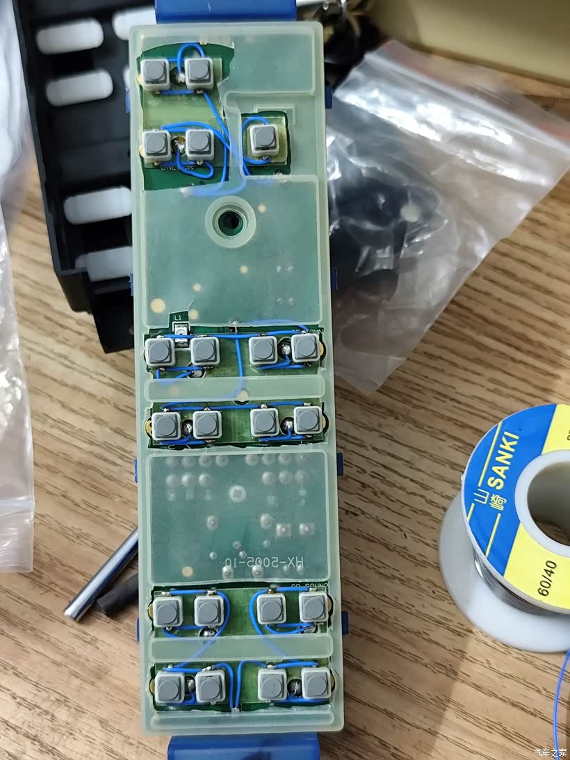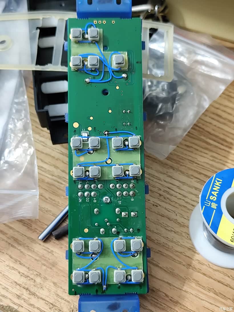 原车的按键按坏了之后,又按坏了两个副厂的,去4s问了一下原厂的要550元一个太贵了,副厂的按起来始终反应不灵敏,上下升降总有那么0.5秒钟延迟很不爽,因为里面电路设计完全不同,于是将原车的加以修复,按起来爽太多,只是这样修复后失去了主驾位一键降窗的功能,原车的是两段式硅胶导电胶,修复后按键只能是固定行程的,不过这一键降窗屌用不大,也就无所吊谓了