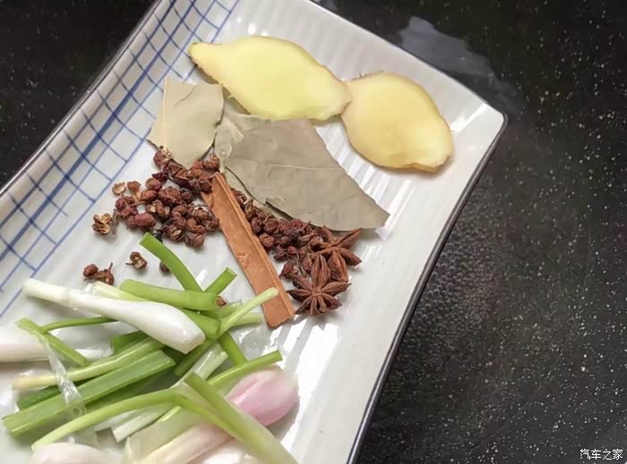 锅中倒入清水加入配料,姜片,香叶,花椒粒,桂皮,小葱,料酒1勺