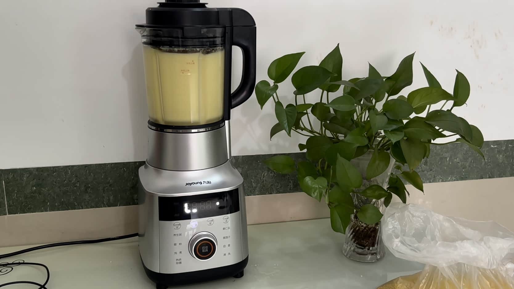 把热腾腾的饺子盛进盘子,玉米汁这个时候也好了。