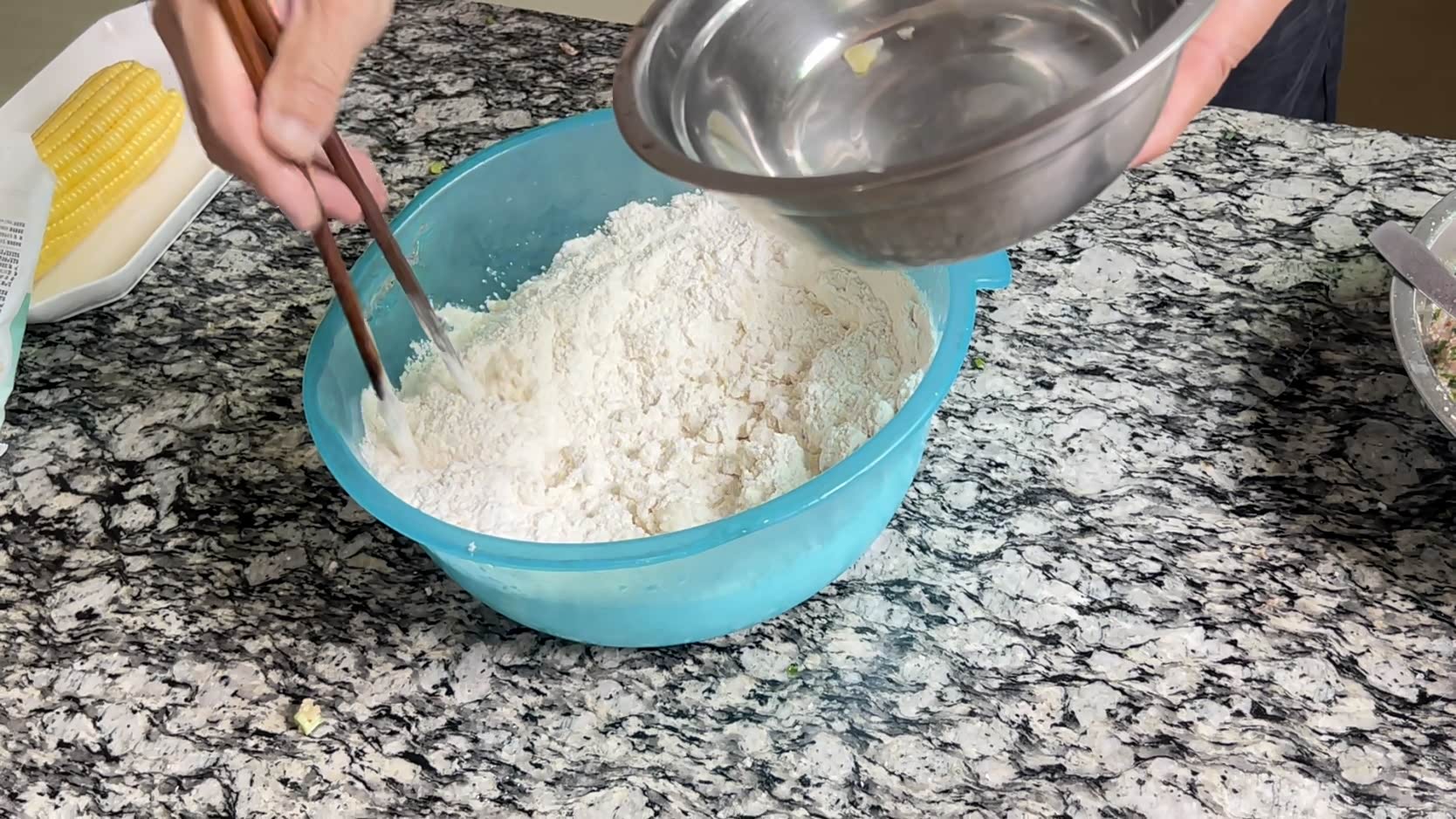 做饺子馅:切好的肉块,用绞肉机打碎,把小葱、玉米、姜、蒜加进去饺子馅中,再放入盐、生抽、五香粉,搅拌均匀后,加入香油封层。