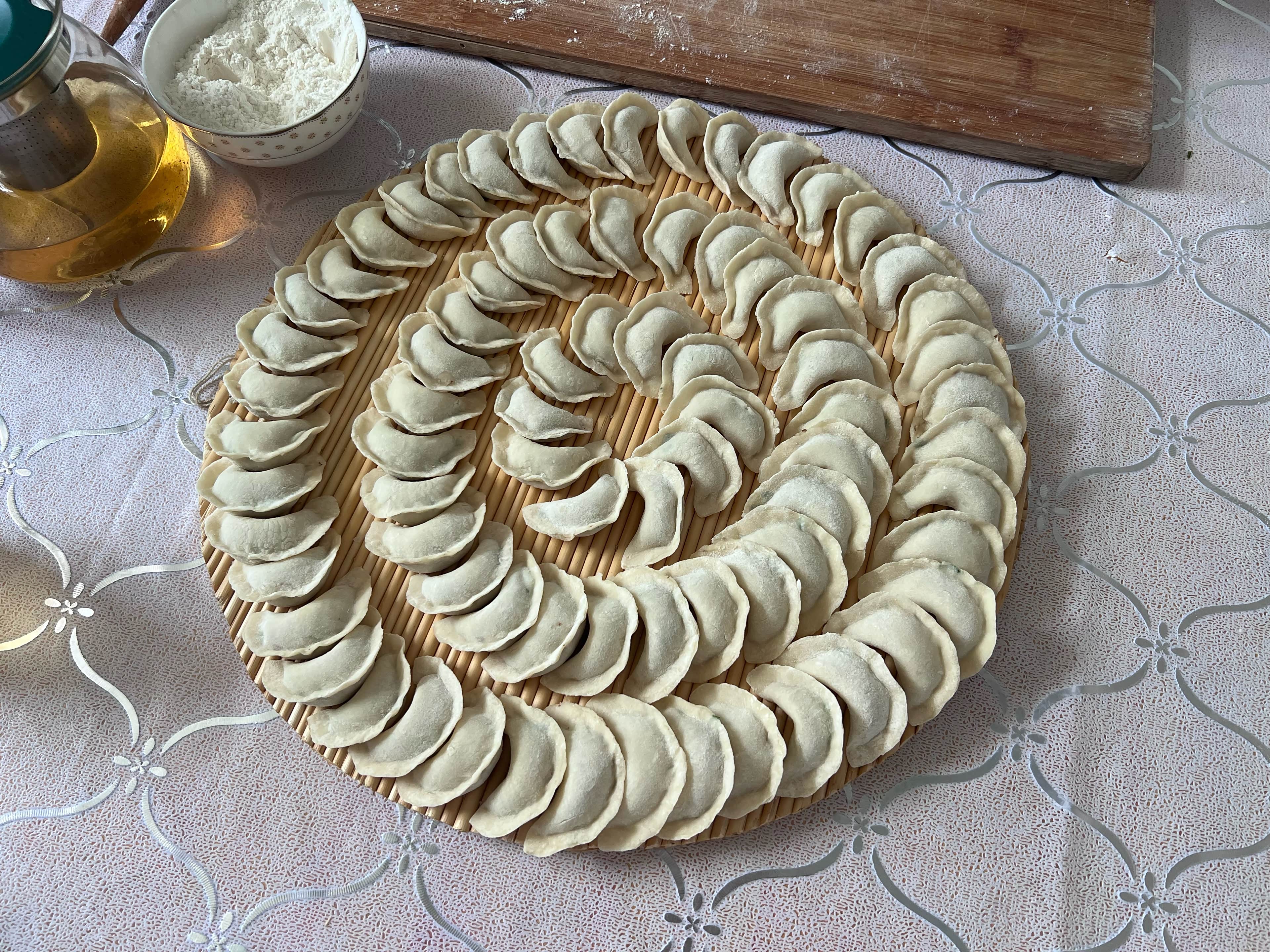包饺子:分工合作,我来擀面皮,老妈包饺子,一边包一遍唠家常,平常工作忙的时候哪有这机会啊。