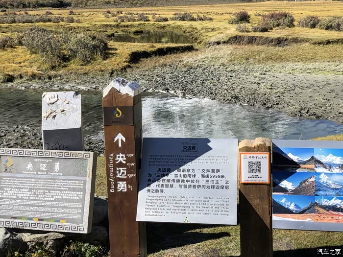 下了电瓶车,往下走就到洛绒牛场。走过了洛绒牛场,就会看到出发去牛奶海和五色海的指示牌。条件允许的情况下,能骑马就骑马吧。几公里的山路在高原要走好几个小时,要是体力不够好,就会一路走一路歇,步行100米就会有跑完800米的感觉,极度的喘啊,喘啊,喘啊,喘。