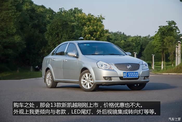 凯越,这不是一辆让你感受速度澎湃推背感的车子,也不是一辆让你直通山顶越野车,只是一辆为你遮风避雨,能任劳任怨的一部家用轿车。选择车子的时候首先要知道你想要的是一辆什么车子。这样你就不会后悔。
