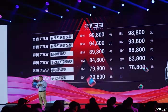 在这个风云变幻的汽车市场中,奔腾作为中国一汽旗下的自主乘用车品牌,一直受到众多用户的关注。在全新品牌战略的指引下,奔腾品牌如今更是焕然一新,研发速度不断加快、质量水平不断提升、营销创新不断深化,在汽车市场整体下滑的大环境下一路高歌猛进,全面进入品牌向上、产品向上、销量向上的品牌发展阶段。8月3日,继T77之后的第二款SUV车型奔腾T33在成都上市。届时我会在成都世纪城国际会展中心为大家带来图文直播,与大家一同见证这款全系高配家用高颜值SUV 的诞生。