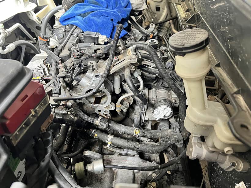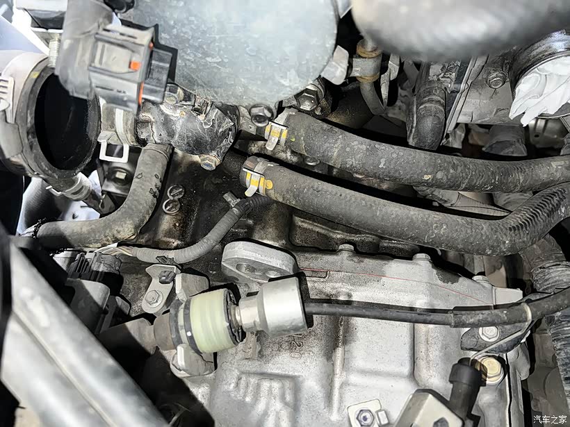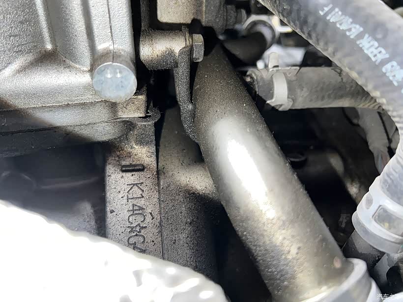 10月份时见油迹比较多了,当时没时间搞,就用清洁剂清了一下。而到12月份时开始就发现,跑一段路后停车,下车经过发动机仓时,总能闻到比较浓烈的烤机油味,觉得这样下去可能会有安全隐患的,还是修一下吧。认真看一下,发动机号码处的油迹都比较厉害了。