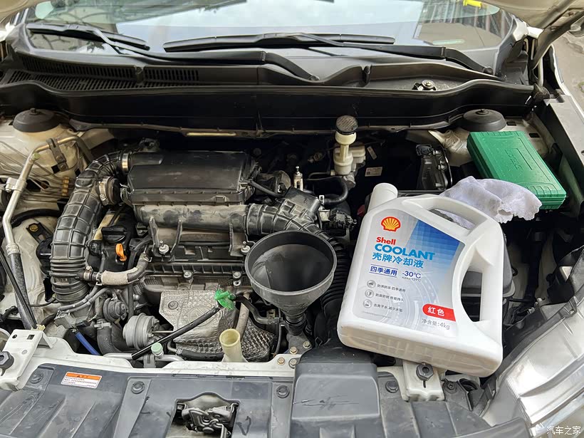 元旦休息,开搞。真空泵座跟节温器座是一体的,那要先放冷却液了,估计放一半到三分二冷却液就行了,不过我打算顺便换冷却液,所以就全放了。