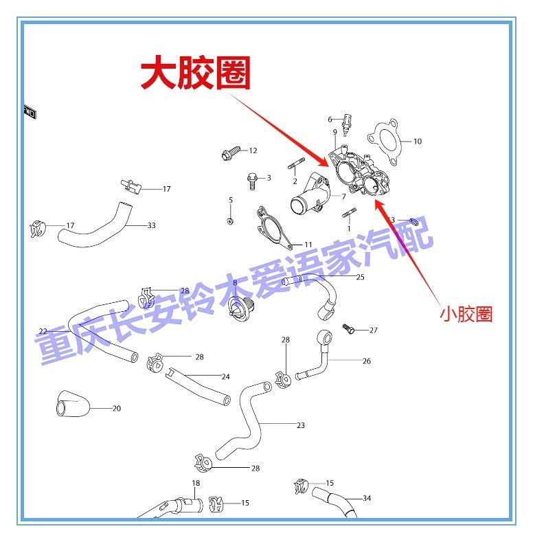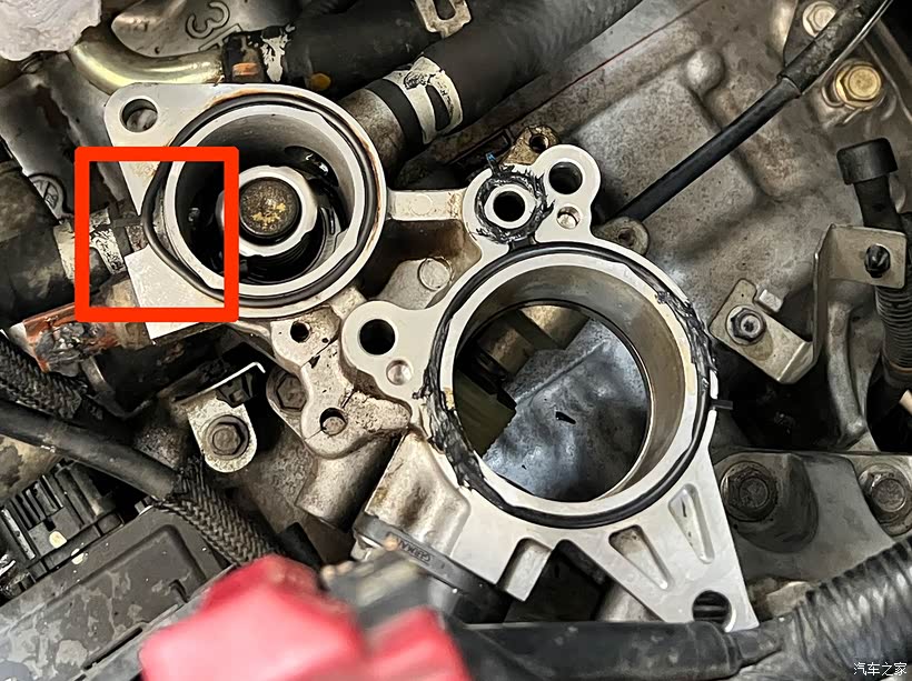 最后只装回旧的小胶圈。一切装复后顺利着车,然后加冷却液,认真观察一下,节温器座没有发现有漏水的现像。