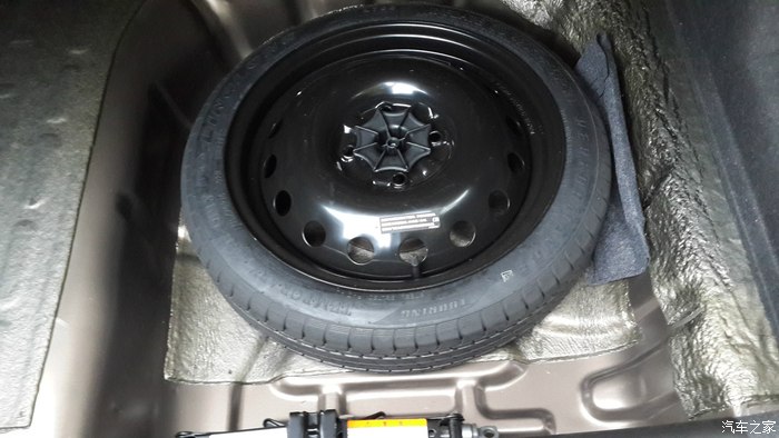 好大的后备箱,以及后备箱内部和非全尺寸备胎: