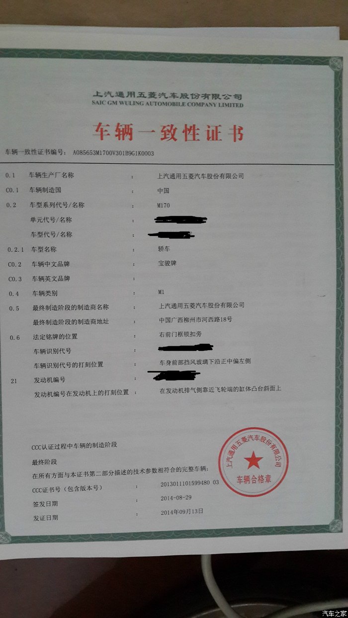 车辆一致性证书,背面没照了,上面有生产日期,9月13号: