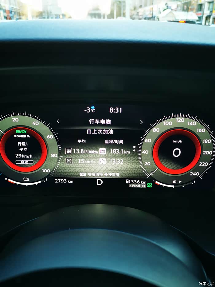 雪天至今半月有余,图片显示的是这段时间以来的真实油耗,表显平均13.8个油。上次加满油,目前油表显示剩半箱油(实际前两格油量是大于后两格的,也就是说实际是用了大半箱油),实际行驶了183.1公里,这个油耗的确是比较高,大半箱油才跑了183.1公里。还有半箱油,显示续航里程336公里,目前道上的雪清的很好,如果继续下雪的话,肯定跑不了这么多公里的。目前看,奇骏epower冬季油耗应该比夏天是翻倍的,本人夏天油耗基本在7.8左右,还是很满意的。至于冬季为什么油耗比夏天翻倍,本人不想去研究,但本人油耗偏高应该有这样两个原因:一是每次行驶里程短(2-3公里),如果里程到10公里的话,油耗会明显降低;二是胎压偏低,准备周天将胎压调高。