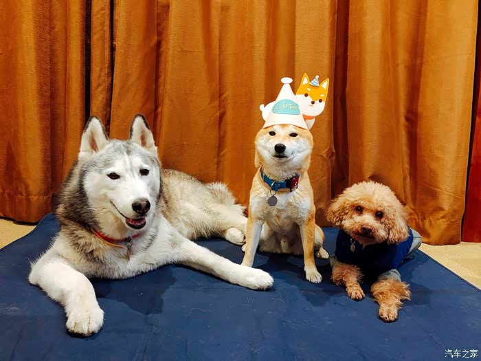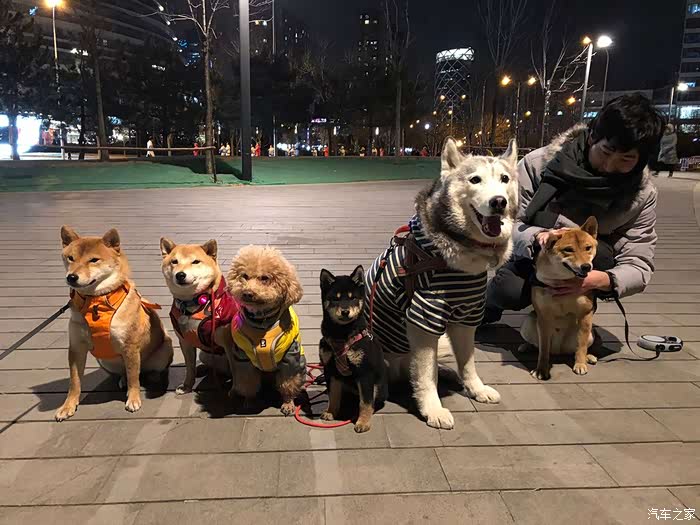 依然是2个人带着3个狗,二哈柴犬贵宾。