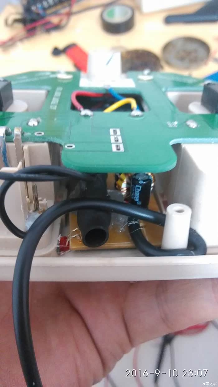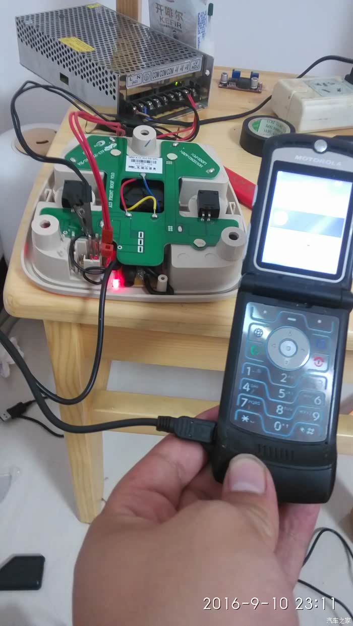 接线说明见图片,把总成拿家去,慢慢收拾,找了一个点烟器插头的板,标注输出是5v1.5a,实测可以达到1.7多一点,够用了,但是这个板电路用料不是太好,方案简单,整流肯定不行,凑合够用。