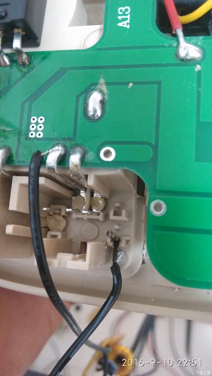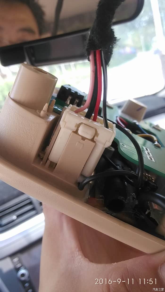 开始安装,原装带的是点烟器插头,大多也都是带这种,但是太影响美观了,另外,点烟器电路保险丝熔断电流太大,起不到有效保险,而且走线太长,容易出问题,又查了查资料,发现新风2阅读灯预留acc电源,就是插上钥匙拧一档就通电,关掉钥匙拔出钥匙就断电,和点烟器一样,比较理想,那就它了,开始拆,拆的时候忘了拍照了,就是看灯罩有缺口的地方,用平口螺丝刀小心的起下来,三块都弄下来,然后看到三个螺丝,也都起下来,整个阅读灯总成就下来了,总成电路是个插头