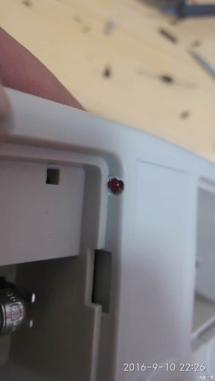 发现板子上还有个小灯,不用白不用,就在壳子上打了个眼