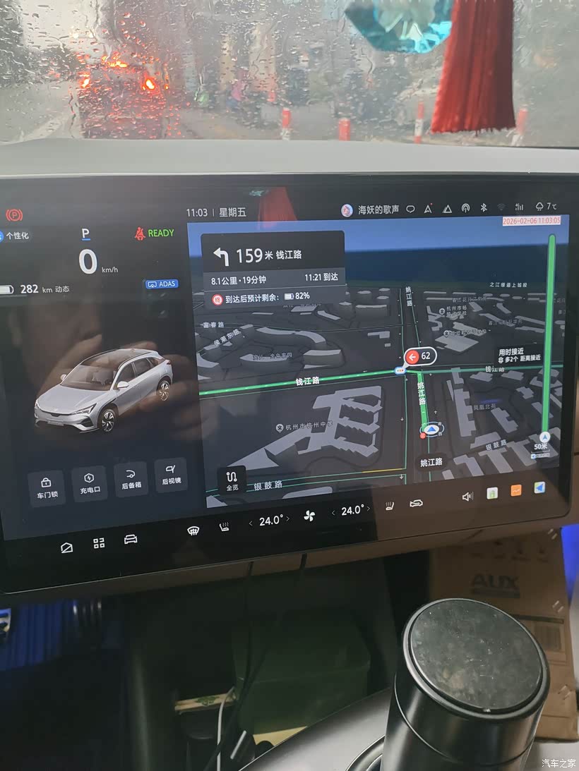 在车上,我没跟他讲一堆参数,就捡他开车最关心的说: 我这车续航标520公里,虽然现在的大冷天对续航确实有挺大影响。但像我这样从杭州开回来的单程200多公里,也还是一点问题没有,中途不用补电。
