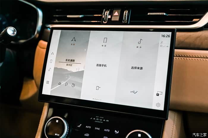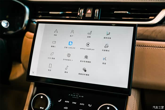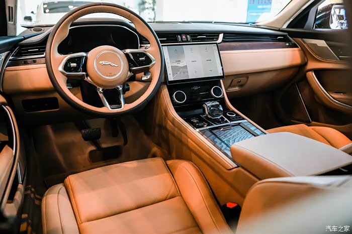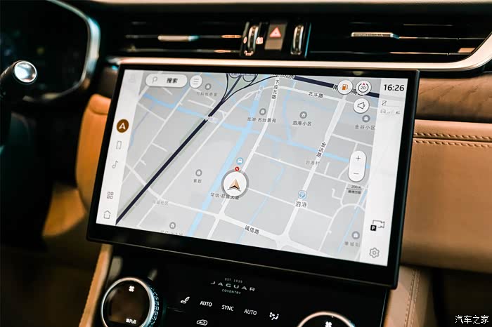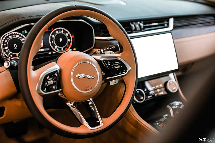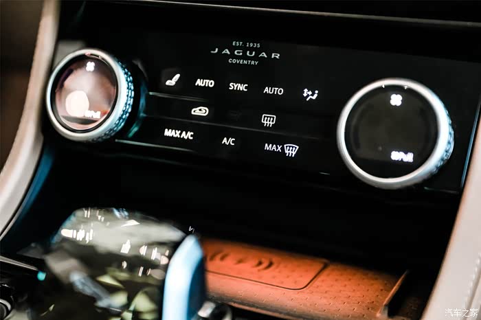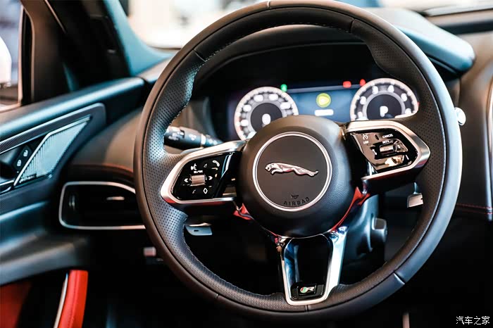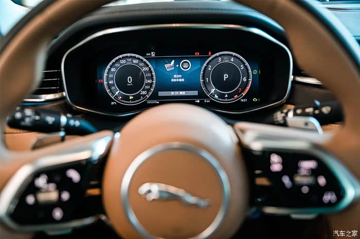 环抱式中控台设计延续了捷豹家族式特征,让车内整个布局不仅仅是动感,还激增了几分沉稳和大气。