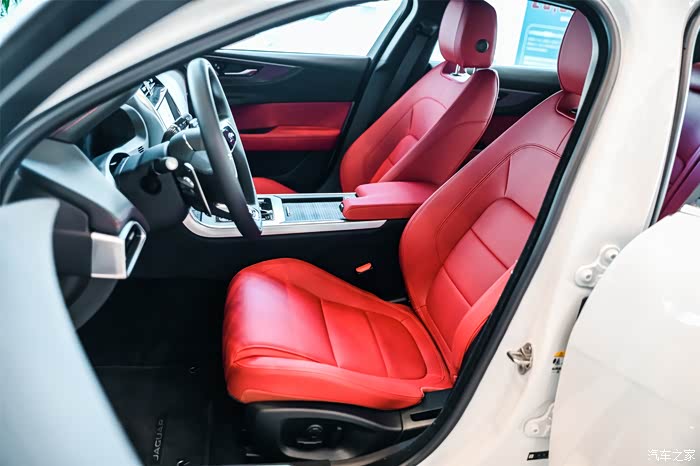 捷豹XEL前后排座椅均采用真皮包裹而成,软硬适中,红色显活力,前排座椅支持多向电动调节和电动腰托。