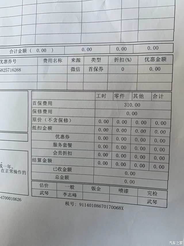 这次首保是零消费。