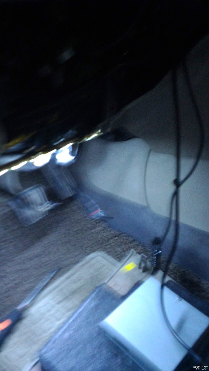 右下角那个方形盒子就是夜视系统的主机,放在了方向盘下面,很隐蔽的位置,模糊了