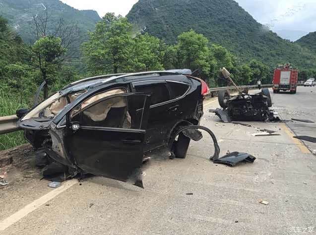 2018年7月9日,广西桂林恭城县发生一起车祸,一辆本田CR-V与一辆小货车相撞,本田CR-V车身被撞成两截,车头和车身分离,车祸造成2死1伤。