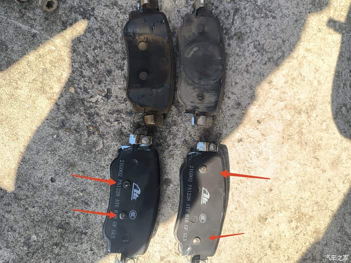 不推荐Ate的刹车片,前片型号1227后片1228,前片框架尺寸比原车的小点,活动间隙大,倒车后踩刹车再前进踩刹车有一声响,且掉粉严重,三天就能厚一层。四月换上七月份就换了,随着最近环境温度升高,踩刹车出现啸叫响声,高温性能差!!!