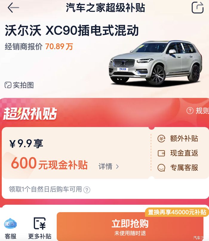 购买车前可先领汽车之家600元补贴,与政府补贴、厂家和4S店补贴不重叠,是额外给用户赠送的!