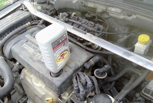 对了,还要补充一下,放机油时要把千斤顶放下来,让车子平衡,这样机油放的干净些 !放好后再抬升就是了。这张是拆下机滤后的发动机上的样子,两个孔,一进一出,过滤机油用的。接着换汽油滤,我是每1万公里更换一次。汽油滤在右后轮处,还是那样,千斤顶加硬板纸。看一下我在车底拍的,底盘离地很高的,不要害怕钻不进。把汽油滤两边的绿色的按钮用力按下,就可以很轻松的把汽油滤拔下,再松一下中间的那个螺钉,拔下接地线,旧的汽油滤就下来了。插上新的汽油滤,接好地线,检查一下是否有渗漏现象就完工了。本次作业费时一个小时,其中还因为放油螺…