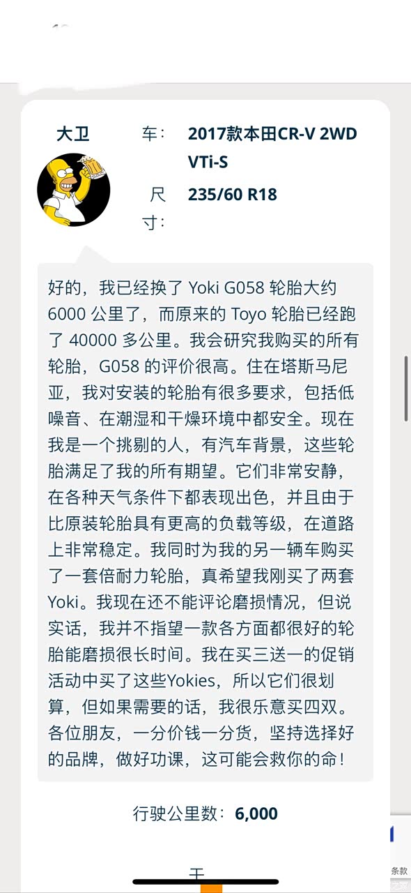 后来也是无意间发现了G058这款胎,比较小众……但口碑还不错,符合我换胎的主次需求,而且价位很合适…