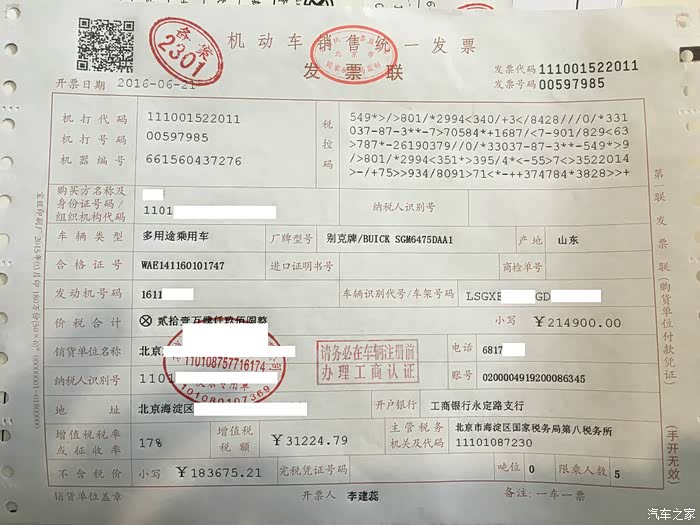 两天后,4S店集合,一共两辆昂科威、两辆GL8、两辆英朗一起去的,4S人员全程负责流程办手续,我们一堆车主就站在一边等,但其实说实话,还不如一个人自己办,一堆人一起办更墨迹,唯一的好处就是不用自己填表自己跑了。
