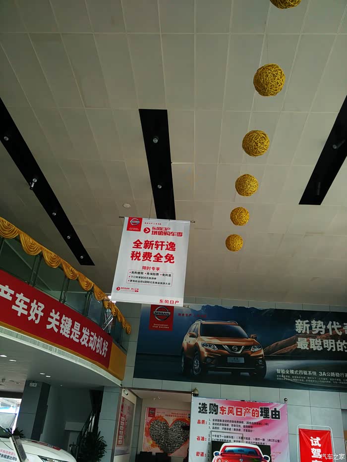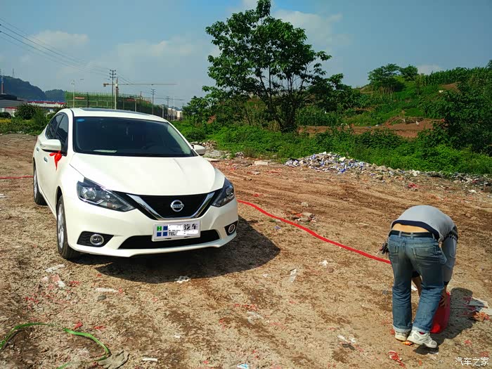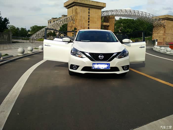 言归正传,后面上了汽车之家,了解了很多品牌,和老婆也商量了下价位,家用觉得选个总价办下来15万左右的车就行了,家用,我也是第一台车,新手新司机,也不要太贵的。价位确定了,后面又为车型烦恼了,我看了之后一直觉得买个小型SUV,可是媳妇就是不干,最近媳妇也要拿驾照了,说她开去上班的时候开个SUV不安逸,上班哪有开SUV的,我其实想法是周末出去耍也可以不怕稍微烂一点的路,可是熬不过,因为我上班走路就行,她拿驾照了肯定是她开着上班的时候多,所以第一台车只能听她的,而且颜色也确定必须白色的。。。说后面买随便我怎么选。确定了这个后就开始真正的去店子里看现车、谈价格了,这期间,我是天天手机看汽车之家,这时候刚好轮到本田思域上市,第一眼看这个车的时候真的是被这个车子的外形吸引了,看到炫动蓝很有赶脚,我们这小城市,一直没得现车,后面来了现车还是白色的,这个也是老婆唯一不反对必须要白色的了,她看到蓝色也很喜欢。。。我们就给销售说来了蓝色就通知我们去看下现车,可是到现在也没给我们打过电话。。。。后面朋友说你买刚出来的车都没降价的,不划算,说干脆等到下半年去买,不过当时觉得懒得等,自打提出买车这个事情后我就想马上买了(急躁啊),后面4S店子说蓝色可能要等一段时间,我就不爽了,就跟老婆商量要不再看下其他的牌子。现在想来我们这买车这个决定下的太快啦,呵呵。到后面看车就看得多了,大众速腾、宝来,速腾神车不是吹,确实空间也大,现在的价格也实惠,13万多的中配,内饰设计也挺好,4S中控还全部配好,大众没选择主要是不想太“大众”,呵呵,因为感觉大众的外形都一个样啊,我们两口子都还是比较外表派,另外还有个原因就是大众4S店算贷款的钱比其他牌子的都贵,优惠幅度不行,没得好多诚意的赶脚,可能确实大众的生意太好了。后面又去看明锐,明锐是我选择的车子之一,后备箱那个感觉很好,很大,屁股也很好看,前脸也很喜欢,内饰也能接受,后面就是谈价格,老婆这个时候就出马了,谈了半天价格,卖车的人死脑经,好像感觉卖不卖无所谓一样,顿时我们两个的感觉就是还非得要买你?直接走人。然后去了马自达,昂克赛拉魂动设计的前脸给人很凶悍的感觉,只是挂上车牌稍差些,看了之后也很喜欢,无奈老婆不喜欢,后面看了下后排,确实空间窄了点,后排家里人带着娃娃坐车可能就有点拥挤,所以就只有不考虑了……看着这个时候又看了福特,总体感觉价格不是很划算,空间也一般,直接就没考虑了,最后看得日产轩逸,因为在网上看了很久,新轩逸图片觉得都还过得去,就去实体店看了,一去4S店,跟老婆两个人看了天籁,销售说15万多,低配,但是有个大问题,我当时左脚受伤不舒服,但偏偏是脚刹。。。这该死的脚刹!!我觉得天籁就是外面看车挺一般,屁股做的很好,内饰却感觉给我挺上档次的,虽然是低配哈(我对车懂的不多,大家见怪不怪哈),后面就看了轩逸,最满意的就是我们两个做进去都感觉空间上都比以前的看得紧凑型车要宽一些的样子,新款的前脸也比较运动的感觉,屁股我也很喜欢,中控也还看得过去,多功能方向盘,稳定系统也配置了,一键启动,当天谈了两个多小时,销售说有现车,所以就下定金定车了。心里想着也懒得再逛了,逛车也好累啊。开了一千多公里,车子开着挺舒服,转向功能精准,油耗还是8.4L,现在大热天,空调开道3挡,动力也还够用,全车密闭性感觉很好,从上面看车子觉得有点短,外表也耐看,内饰感觉一般,不过座椅感觉腰部有点累。不废话,上图。