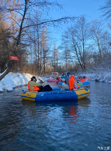 乘一叶皮艇,闯入零下二十度的冰雪画廊。两岸玉树琼枝,河面雾气氤氲,晨光穿透林间,仿佛驶入了现实版的《冰雪奇缘》。