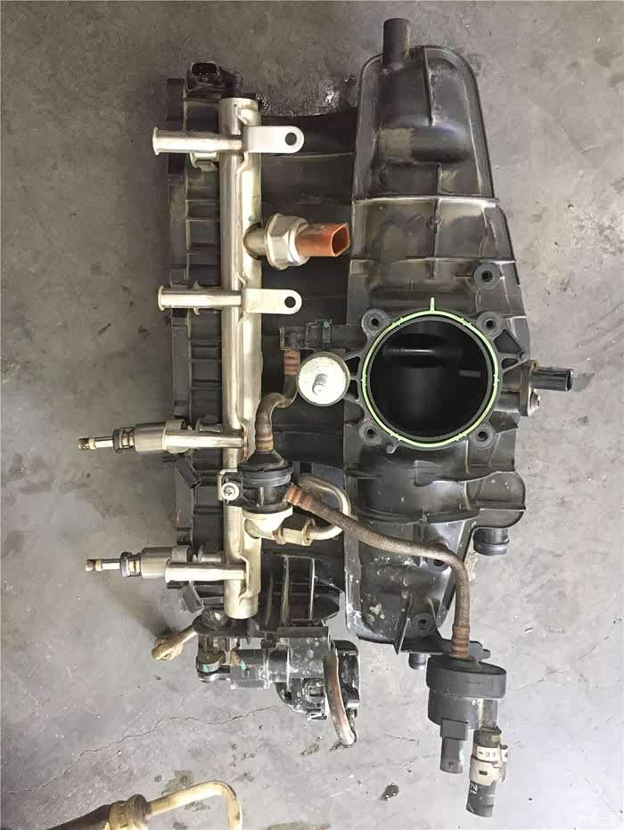 以前都是采用挂吊瓶的方法进行清洗,但是这种方法对于年限久远积碳沉积严重的车型来说用处不大。必须用外力的物理方法进行清除。所以连同进气管道也要进行拆卸下来。