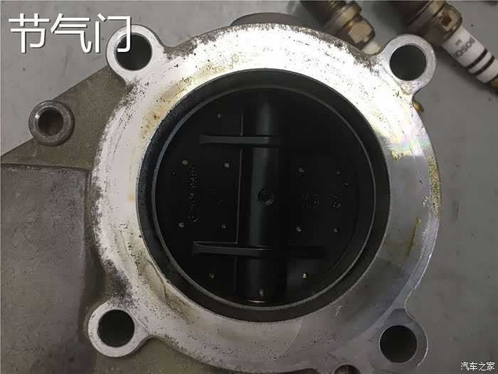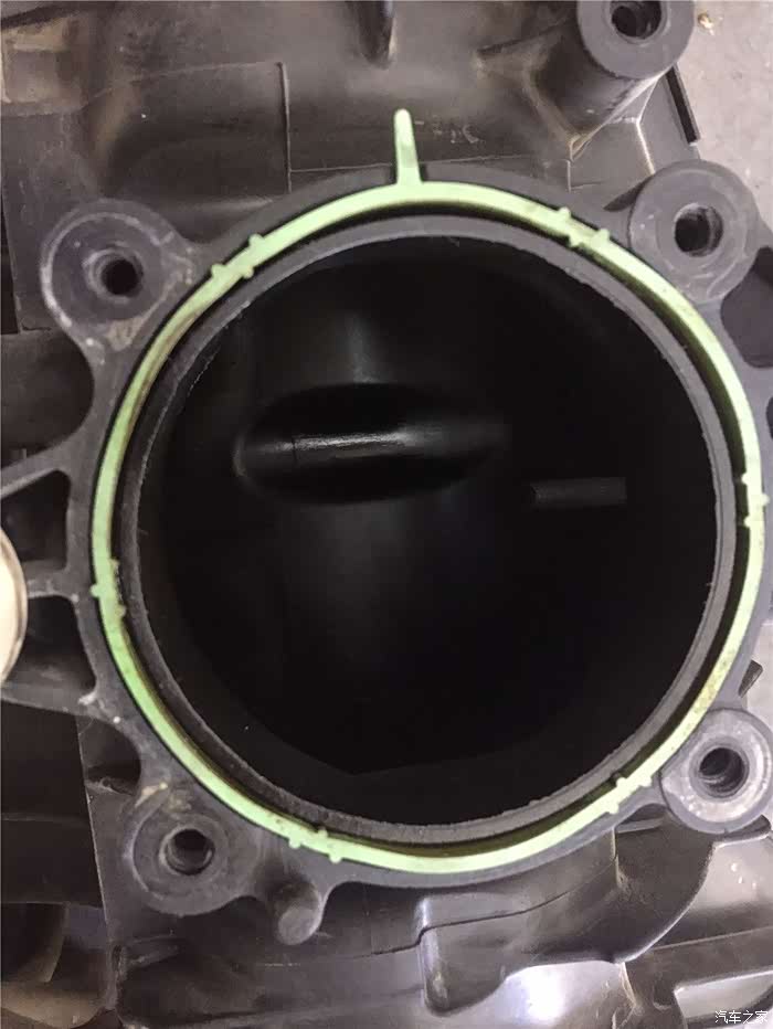 节气门也是要连同一并的拆下的,正好进行一下清洗。不过看到节气门的状态之后,发现好了许多,只有一点点积碳的痕迹。