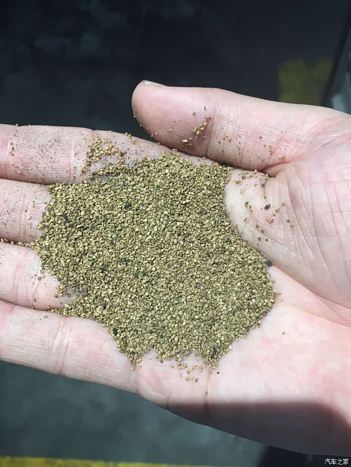 这就是传说中的核桃砂了,就是将核桃打碎之后加工成的粉末状的固体。这个核桃砂表面坚硬,可以有效的清除掉积碳,但是因为硬度远远的低于金属材质,对缸体表面的铝合金材质不会有任何的损伤。核桃砂原本是源于宝马的一项厂方清理技术,现在被推广开来,主要是为了给清理积碳达到更好的效果。