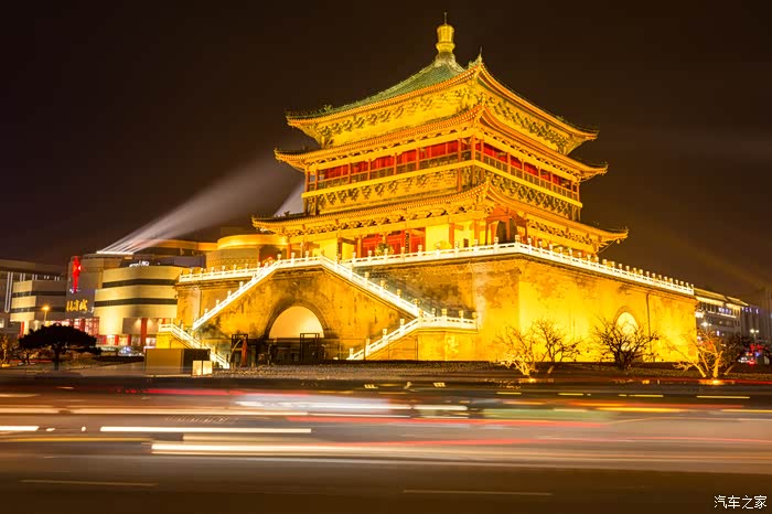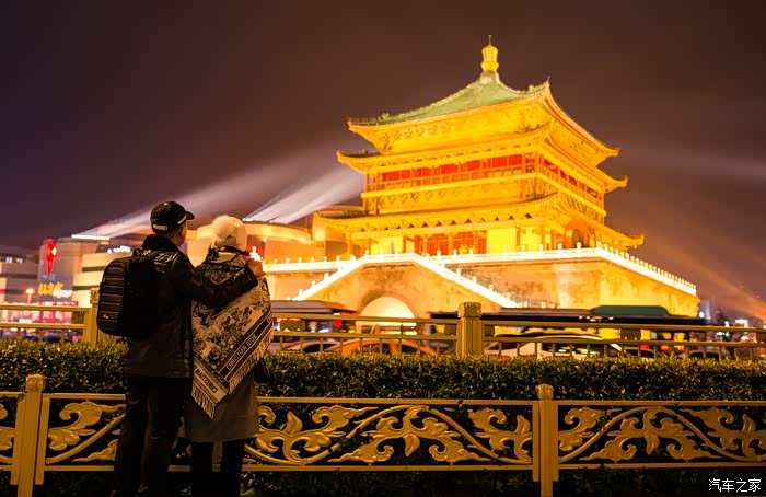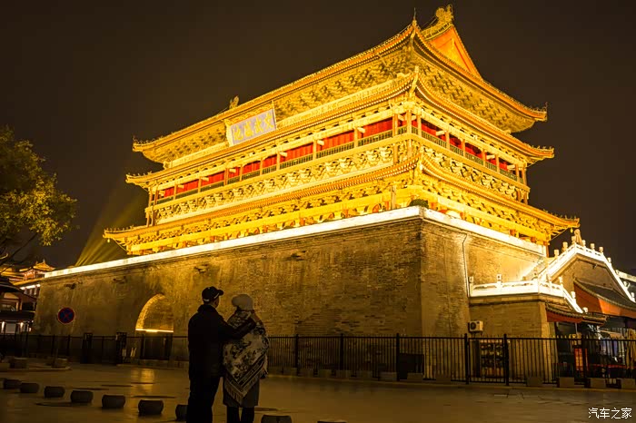 从回民坊步行回酒店,路过鼓楼、钟楼,拍拍夜景。