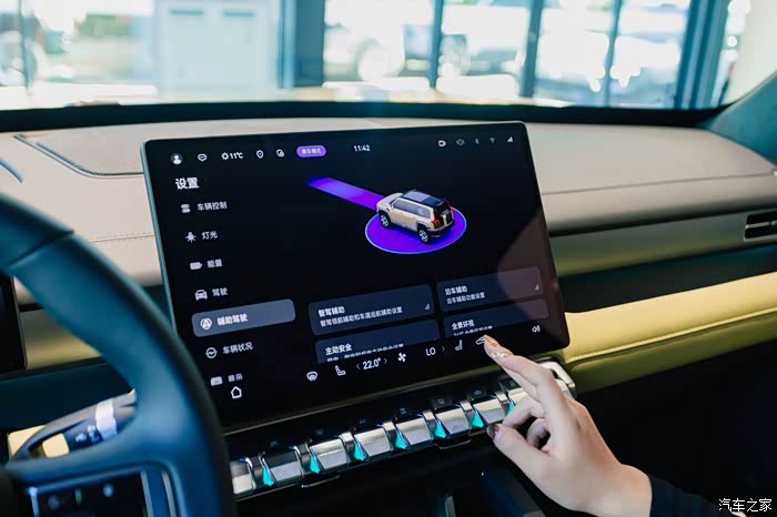 猛士M817搭载了华为乾崑ADS 4智驾系统,可以说是“含华量极高”的硬派越野,支持车位到车位的辅助驾驶,开启智驾后,会亮起专属小蓝灯,既具仪式感又能提醒邻车,安全感拉满。同时搭配了鸿蒙座舱5,且配备了10.25英寸仪表屏、15.6英寸中控屏、HUD抬头显示等六屏交互,操作起来相当丝滑,值得一提的还是猛士M817的10°蟹行模式更是女生福音,遇到狭窄车位时车辆可斜向平行移动入位,侧方停车新手也能拿捏
