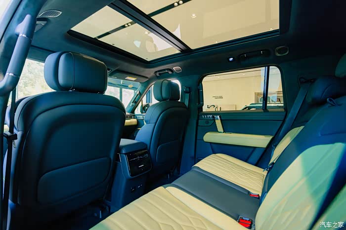 座椅采用Nappa真皮材质,后排空间宽敞得超出预期,膝盖离前排两拳有余,头部空间也很充足,再搭配加热、通风、8点按摩功能,没想到这么“硬汉”的一台车,同时兼顾了驾乘的舒适性