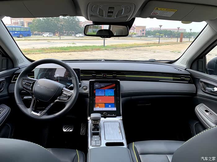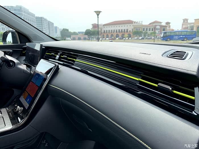 还有就是它的内饰,和外观一样的设计,整体看上去有很多黄色的条纹装饰,虽然这只是一些小细节,但是整体看上去真的提升了豪华感,而且中控的大屏幕也是非常的给力,也是超级智能的,听歌、打开空调、等等都不用手动操作,直接说话就行!