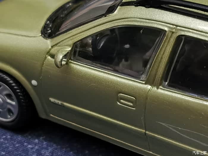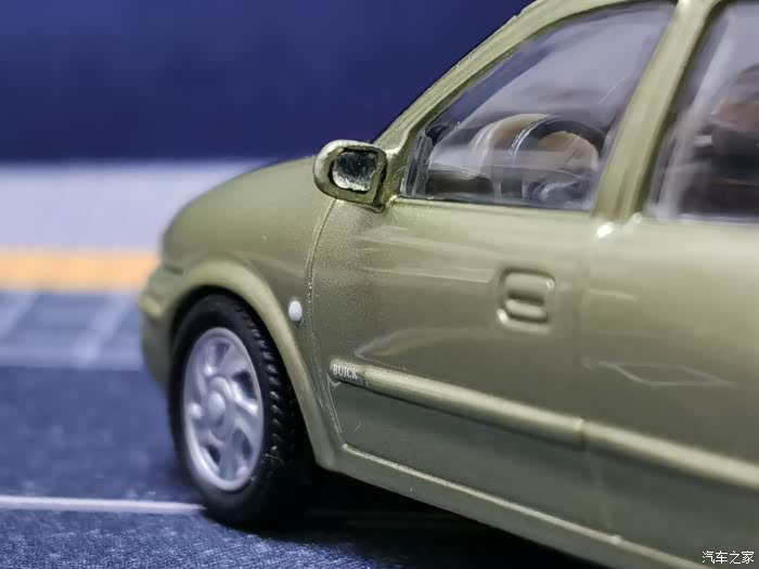 细节表现很好,前翼子板上的转向灯,后视镜镀铬反光片,连防擦条上的“BUICK”车标也没落下。